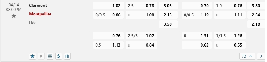 Kèo châu Âu cũng đang là sự ưu thế nhỏ cho các vị khách khi mức ăn của Montpellier đang là 2.13 trong khi đó con số này của Clermont đã là 3.05. Rõ ràng việc đối thủ đang chưa thể tìm thấy những vấn đề đang tồn đọng trong lối chơi sẽ là một cơ hội tốt để Montpellier có thể khai thác hòng mở ra những cơ hội để tạo nên những bất ngờ nhất định. Phong độ tốt thời gian qua sẻ giúp Montpellier tự tin hướng đến 3 điểm cho mình, bằng một chiến thắng.