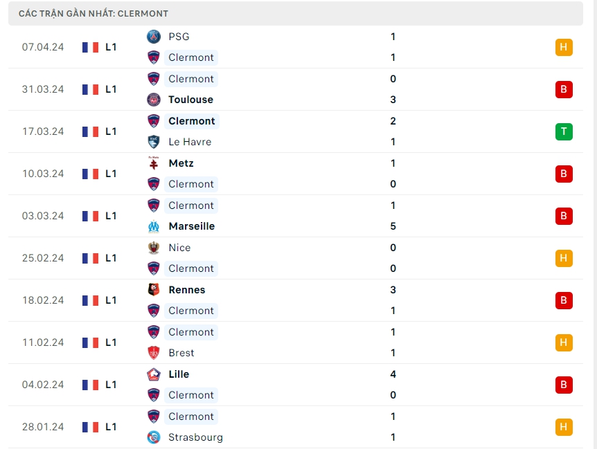 Clermont, sau chiến thắng trước Le harve, họ đã trải qua thất bại trước Toulouse, với phong độ ở thời điểm hiện tại thì thật khó để Clermont có thể nghĩ đến chuyện trụ lại giải đấu cao nhất nước Pháp mùa giải năm nay, hàng công của chủ nhà chỉ mang về 20 bàn thắng sau 28 vòng đấu, một thông số kém cỏi, trong khi hàng thủ bộc lộ nhiều điểm yếu khi nhận 47 bàn thua.