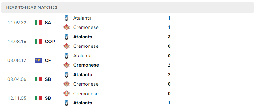 Lịch sử thi đấu giữa hai đội trong quá khứ cũng đang nghiêng hẳn về phía vị khách, khi trong 5 lần chạm mặt nhau gần nhất thì họ đã chỉ mới phải nhận về đúng 1 thất bại. Với trình độ và đẳng cấp vượt trội hiện tại cùng sự quyết tâm trở lại top 4 thì tin chắc chắn đoàn quân của HLV Gian Piero Gasperini sẽ đạt được một thắng lợi trọn vẹn trong cuộc tái ngộ sắp tới. Các chuyên gia dự đoán tỉ số của trận đấu này sẽ là 2-1 nghiêng về Atalanta.