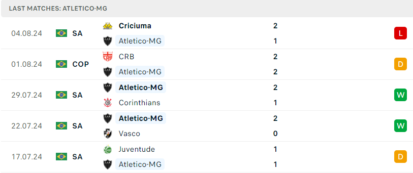 Phong độ của Atl. Mineiro
