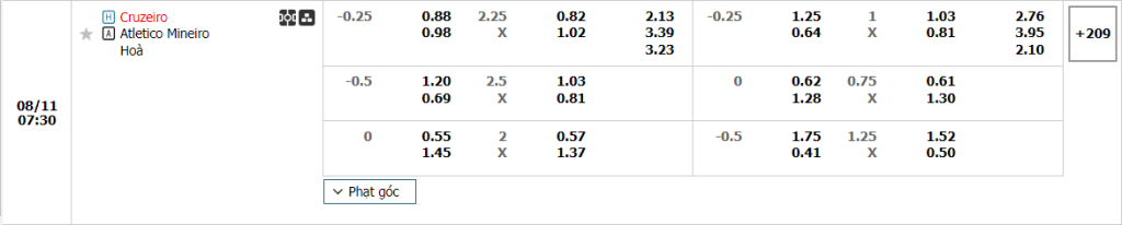 Soi kèo tài xỉu Cruzeiro vs Atl. Mineiro