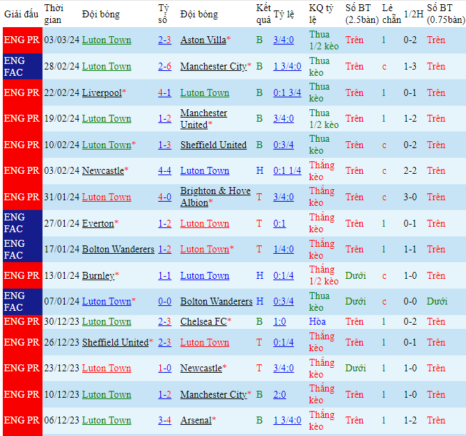 -Phong độ Luton Town