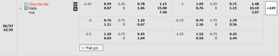 Chất lượng đội hình cùng đẳng cấp vượt trội thì Czech chắc chắn là cái tên được đánh giá cao cho kèo đấu này trước Malta qua mức niêm yết đang là 2,25, có thể thấy sự chênh lệch về phong độ cũng như đẳng cấp của cả hai, Czech vẫn luôn được đánh giá cao ở Châu Âu, trong khi Malta chỉ là một nhược tiểu, trong 10 lần mà hai đội chạm mặt nhau gần nhất thì Czech đã có đến 9 chiến thắng cùng 1 trận hòa trước đối thủ, đây chắc chắn là một trận đấu với thế trận một chiều và khi đó Czech sẻ dễ dàng tìm kiếm bàn thắng bằng những cơ hội được tạo ra, một chiến thắng đậm là điều các cầu thủ Czech hướng đến để có được sự hưng phấn cần thiết cho VCK Euro đang cận kề.