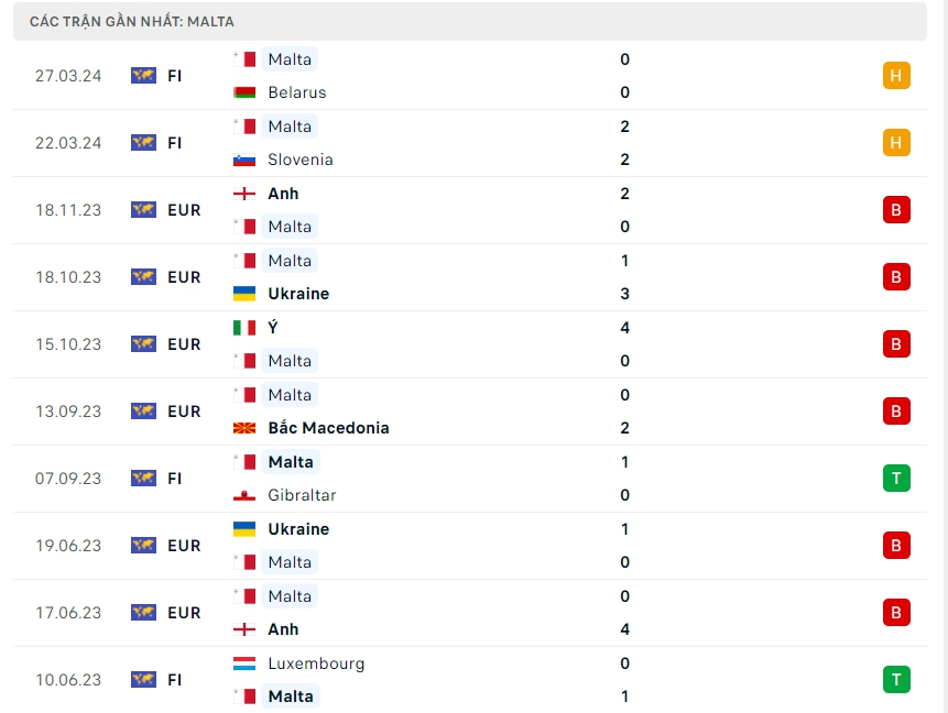 Ở phía bên kia chiến tuyến, Malta khép lại chiến dịch vòng loại Euro 2024 với vị trí cuối cùng tại bảng C mà không có một điểm số nào, họ để thua cả 8 trận, ghi được 2 bàn và để thủng lưới đến 20 bàn thua, đây là một thành tích vô cùng tệ hại, và sắp tới họ sẻ tiếp tục đón nhận thêm thách thức khi chạm mặt với đối thủ được đánh giá cao hơn nhiều là Czech, thật khó để Malta có thể làm được điều bất ngờ trong trận đấu sắp tới khi mà chênh lệch là quá lớn.