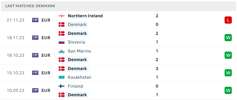 Phong độ của Đan Mạch