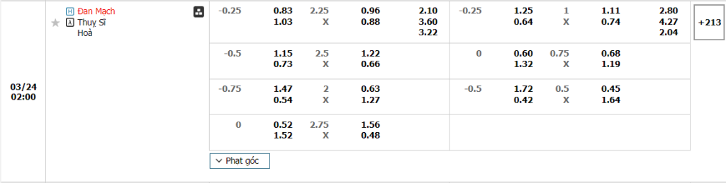 - Chọn Thụy Sĩ +0.25 FT