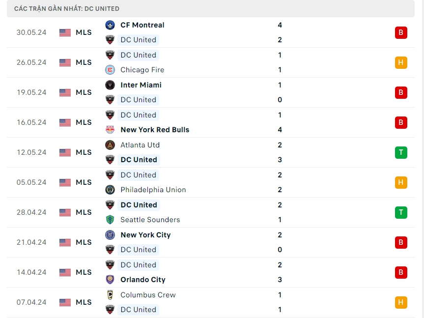 -Phong độ DC United
