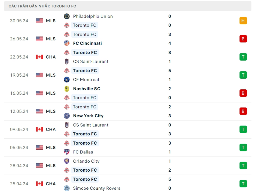 -Phong độ Toronto FC