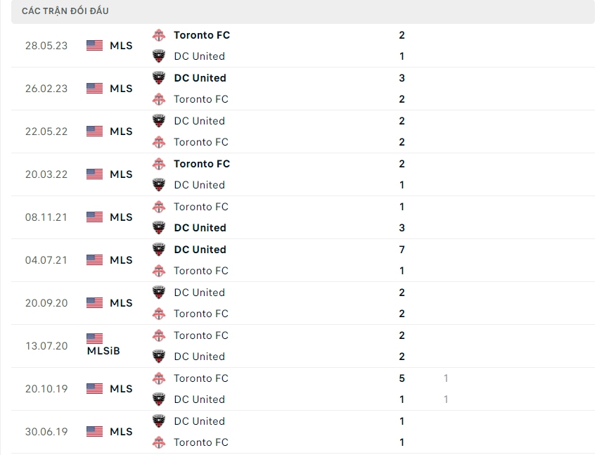 Lịch sử thi đấu của DC United vs Toronto FC