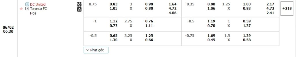 Dù sở hữu thống kê phong độ thuyết phục nhưng sân nhà chính là yếu tố khiến DC United được nhà cái châu Á xếp ở cửa trên và mức kèo được ấn định chỉ là 0.75, DC United có trong tay ưu thế sân bãi nhưng họ đang thi đấu tệ thời gian qua, với chuỗi 4 trận liên tiếp không thắng, đặc biệt trên sân nhà họ cũng chỉ có được 1 chiến thắng ở 5 trận gần nhất, trong khi các vị khách Toronto FC lại cho thấy sự tiến bộ của mình. Lịch sử thi đấu củng chỉ ra sự cân bằng nhất định của cả hai trong quá khứ, sẻ là một trận đấu cả hai đặt quyết tâm cao và khả năng khép lại 90 phút với tỷ số hòa là rất cao.