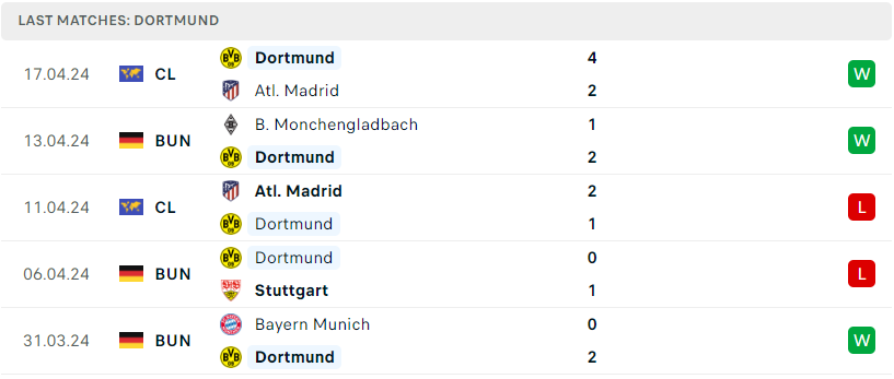 Sau khi vượt qua Monchengladbach, Dortmund tiếp tục thể hiện sự thăng hoa của họ với màn lội ngược dòng không tưởng trước Atl. Madrid và thành công giành lấy tấm vé đầu tiên vào chơi trận bán kết Champions League. Có vẻ như lối chơi của Edin Terzić đang thật sự phù hợp với tài nguyên hiện có của tập thể vùng Ruhr. Nếu như không phải chia sức cho nhiều mặt trận thì có lẽ Dortmund sẽ là một ứng viên hàng đầu thách thức chiếc đĩa bạc. Đụng độ Leverkusen sẽ là cơ hội để họ tiếp tục thị uy sức mạnh.