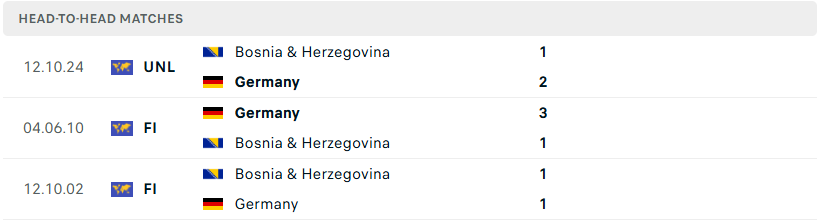 Thành tích đối đầu của Đức vs Bosnia & Herz