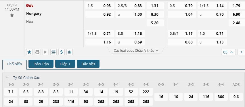 Sự vượt trội một lần nữa được đội tuyển Đức thể hiện ở kèo Châu Âu, khi mức ăn của họ chỉ là 1.31 và con số này của các vị khách là 8.30. Với sự tự tin đã có được sau chiến thắng tưng bừng ở lượt trận mở màn thì Đức sẻ tiếp tục hướng đến 3 điểm nữa khi đối đầu với đối thủ bị đánh giá thấp hơn, tuy vậy sẻ có nhiều khó khăn hơn so với trận thắng dễ trước Scotland, khi mà Hungary vẫn được xem là đối thủ đầy khó chịu với Đức trong những năm gần đây.