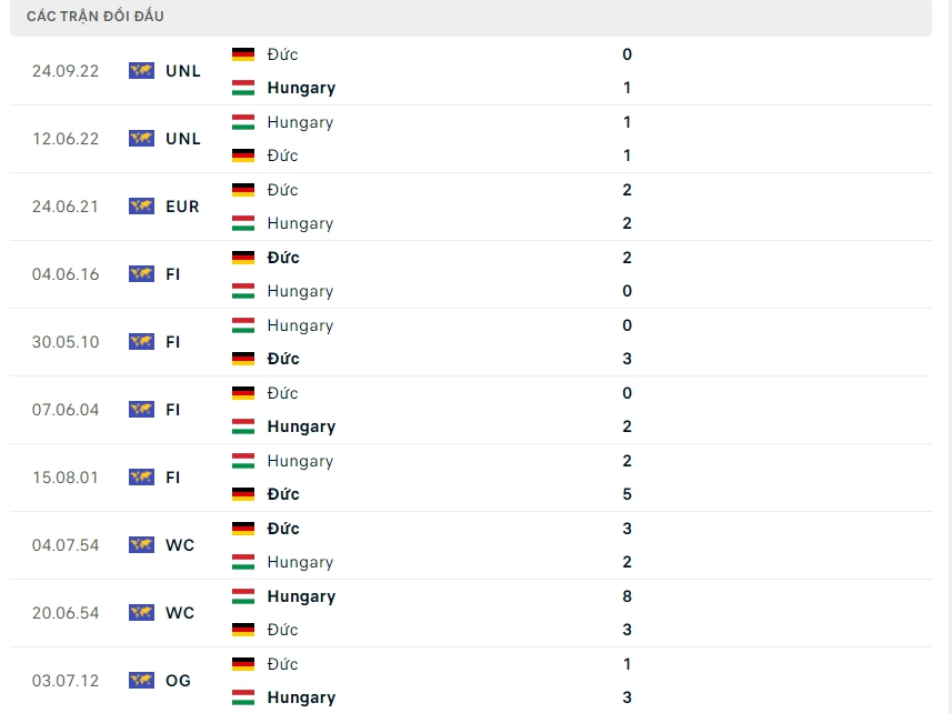 Lịch sử thi đấu của Đức vs Hungary