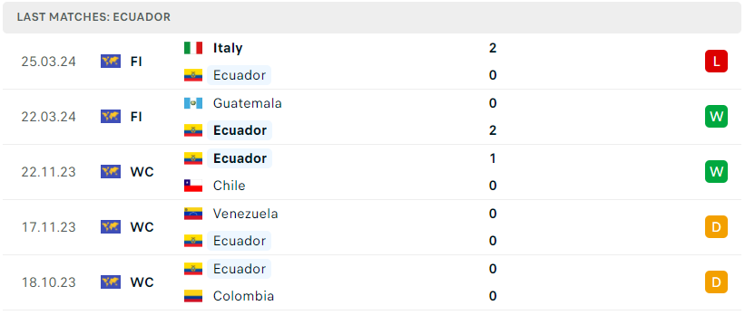 Dù Ecuador vốn là đội tuyển không được đánh giá quá cao về khả năng tấn công và ghi bàn, tuy nhiên trước những đối thủ yếu tại khu vực, họ luôn cho thấy sự lấn lướt với việc chơi chủ động ở từng trận đấu. Trận thắng 2-1 ở lượt đi vòng loại là một minh chứng. Do đó, khả năng nổ tài ở trận đấu tới là rất cao.