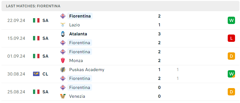 Bên kia, sau rất nhiều sự khó khăn, cuối cùng Fiorentina cũng đã có được cho mình chiến thắng đầu tiên tại Serie A sau khi đánh bại Lazio với tỉ số 2-1 ở vòng đấu trước. Mặc dù vậy, lối chơi của Fiorentina vẫn còn nhiều điểm bất ổn, đặc biệt là ở khâu phòng ngự. Đội bóng của HLV Raffaele Palladino thường gặp khó trong việc duy trì sự ổn định và mất tổ chức khi đối mặt với sức ép từ đối phương. Vô vàn những sức ép đang đè nặng và Fiorentina cần phải nhanh chóng tìm lại hình ảnh vốn có.