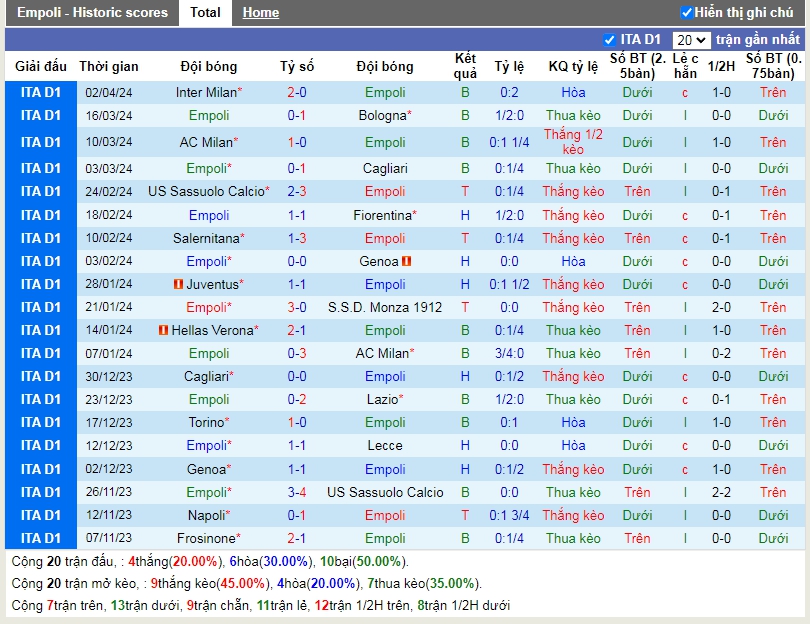 - Chọn Empoli +1/4 HT