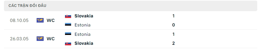 Lịch sử thi đấu của Estonia vs Slovakia
