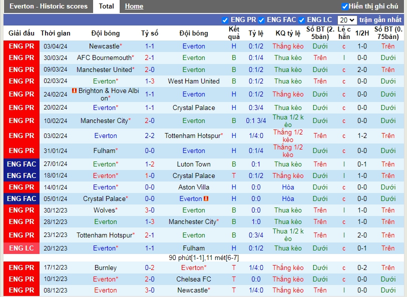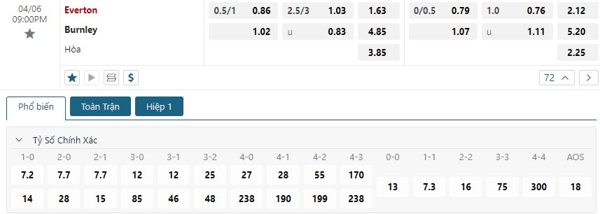 Với lợi thế sân nhà thì không khó để Everton có thể là cái tên nhận được sự ưu ái đến từ giới chuyên môn so với Burnley trong kèo đấu này qua mức niêm yết trên sàn giao dịch đang là 0.75. Lợi thế sân nhà cùng quyết tâm có được chiến thắng sau chuỗi không thắng kéo dài sẻ được đội bóng vùng Merseyside quyết tâm có được trong trận đấu này, phía bên kia một Burnley thi đấu tệ hại khi phải làm khách sẻ đối diện với nhiều thách thức, họ sẻ gặp rất nhiều khó khăn, hơn nữa trên sân nhà của mình Everton luôn cho thấy sự chuẩn bị kỹ lưỡng với 4 chiến thắng, 1 thua khi đối đầu với Burnley trong những lần chạm mặt nhau.