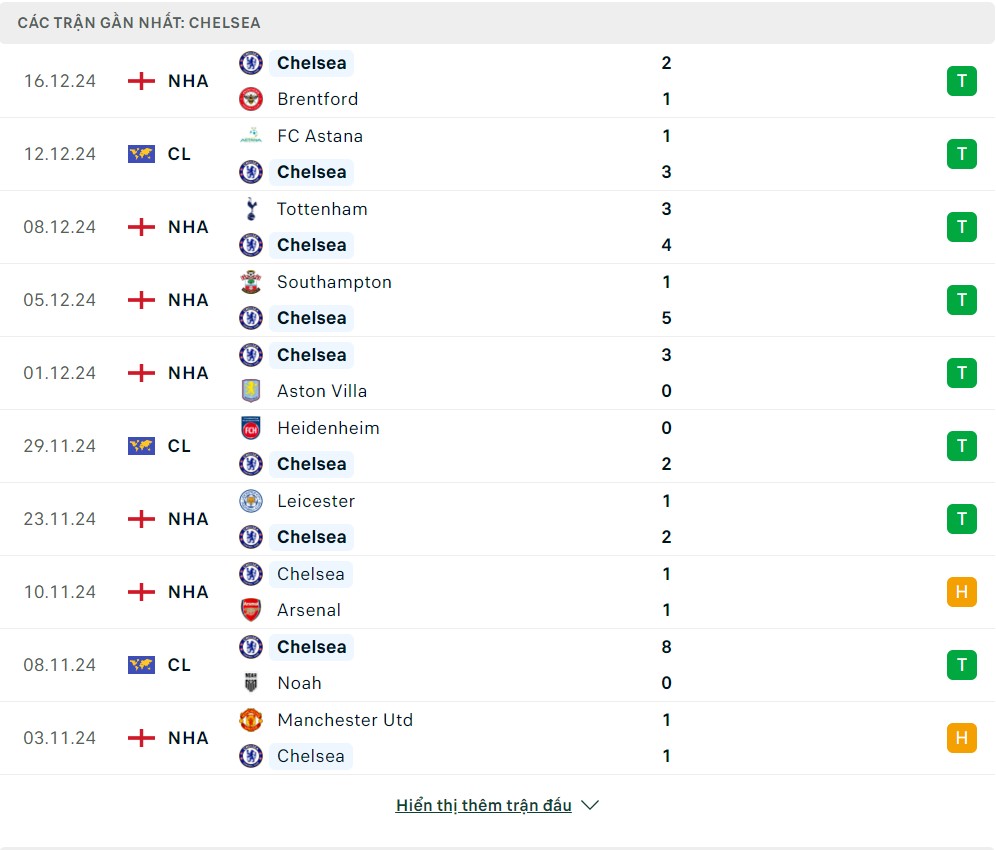 -Phong độ Chelsea