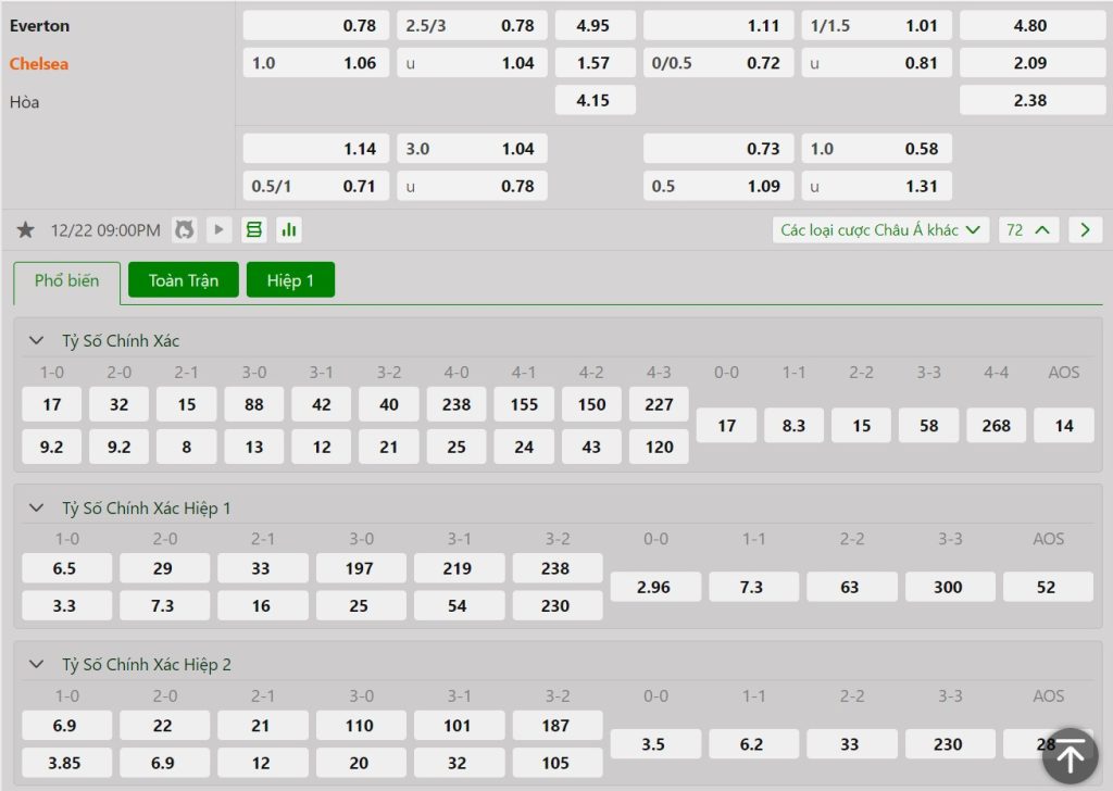 Kèo Châu Âu vẫn đang là sự vượt trội dành cho đại diện thành London khi tỷ lệ cho chiến thắng của họ là 1.57 trong khi con số này bên phía chủ nhà Everton lên tới 4.95. Những con số này đủ nói lên sự chênh lệch giữa đôi bên nhưng không có nghĩa, Everton không có cơ hội làm nên bất ngờ.