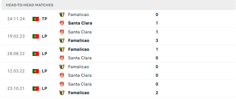Thành tích đối đầu của Famalicao vs Santa Clara