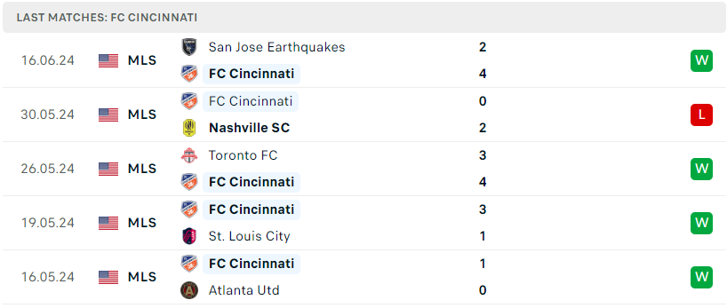 Phong độ của FC Cincinnati