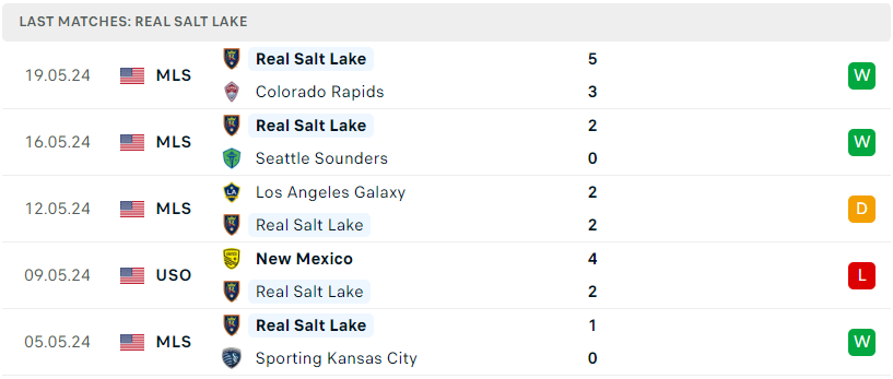 Phong độ của Real Salt Lake