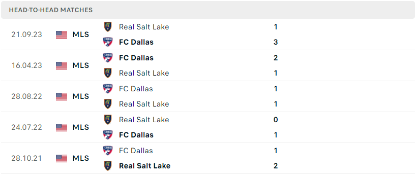Thành tích đối đầu của FC Dallas vs Real Salt Lake