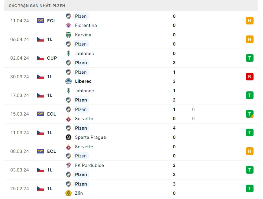 Trong khi đó với Plzen, đại diện đến từ Czech, việc lọt vào đến tứ kết được xem là một chiến tích với đội bóng này, khi mà so sánh về mặt trình độ thì giải VĐQG Czech không được đánh giá quá cao, hiện tại ở giải quốc nội sau 27 vòng đấu, Plzen đang có cho mình vị trí thứ 3 với 55 điểm, dù vậy việc bị Sparta Prague bỏ xa đến 15 điểm thì cơ hội có thể vô địch của họ là gần như không thể, Plzen sở hữu hàng công thi đấu tốt khi mang về 62 bàn thắng sau 27 lượt trận, bên cạnh hàng thủ khá chắc chắn khi chỉ nhận 32 bàn thua.