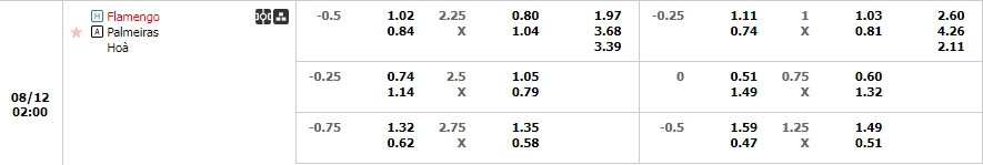 Với lợi thế mang tên sân nhà cùng với thực lực có phần nhỉnh hơn thì Flamengo hiện vẫn đang là cái tên nhận được sự ưu ái trong kèo đấu này, qua mức giá trên sàn giao dịch là 0.5. Dù sẻ không hề dễ dàng cho Flamengo trong trận đấu tới đây nhưng với bản lĩnh của mình Flamengo hoàn toàn tự tin hướng đến chiến thắng, nhất là khi họ vừa để thua trước chính đối thủ ở đấu trường Cup, tuy vậy sau 2 lượt trận thì Flamengo vẫn là cái tên đi tiếp với tổng tỷ số 2-1, hơn nữa trên sân nhà của mình Flamengo đang thi đấu tốt thời gian qua, ngược lại dù là một đối thủ khá khó chịu nhưng Palmeiras đang chơi cực tệ khi phải làm khách họ để thua 3 và hòa 2 ở 5 trận gần nhất, một điều mà NHM Palmeiras cần phải lo lắng là mỗi lần hành quân đến sân của Flamengo thì Palmeiras đều nhận những kết quả bất lợi với chỉ 1 trận hòa còn lại là 4 thất bại.