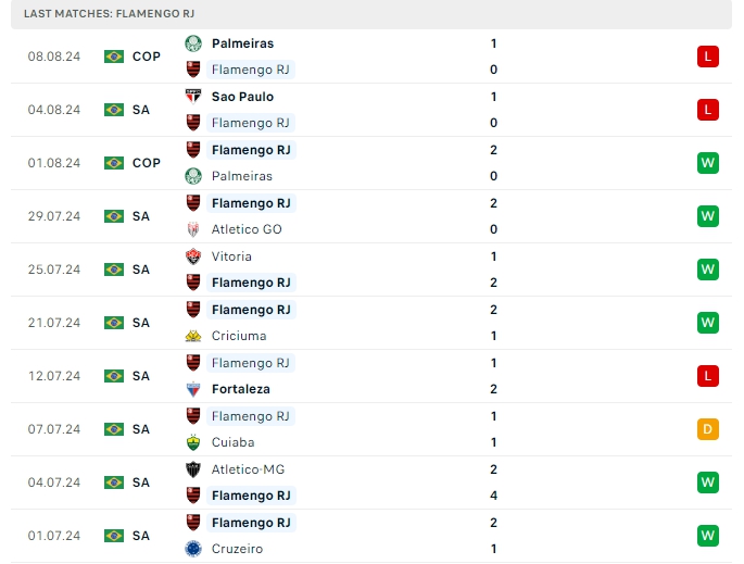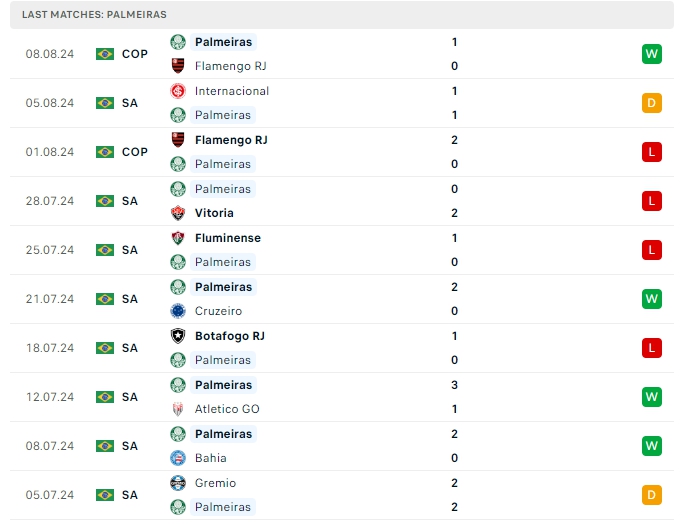 Ở lần đón tiếp Palmeiras gần nhất trên sân nhà là trong khuôn khổ Cup Brazil khi đó Flamengo có cho mình chiến thắng nhẹ nhàng 2-0 và lần chạm mặt lần này sẻ thêm một lần nữa Flamengo hướng đến chiến thắng cho mình với những ưu thế đang nắm giữ.