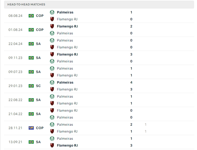 Lịch sử thi đấu của Flamengo vs Palmeiras