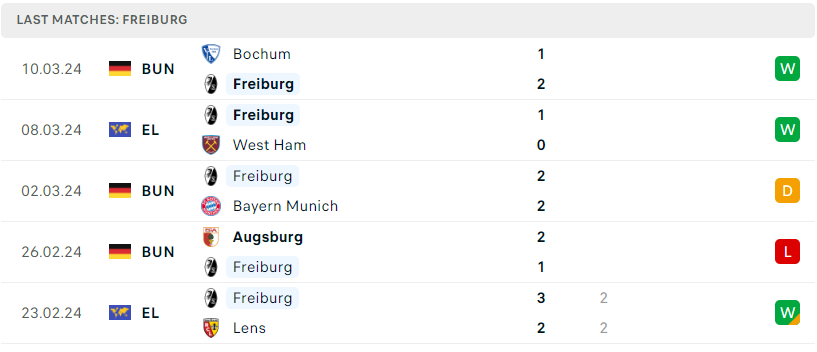 Sau khi xuất sắc vượt qua West Ham tại lượt đi vòng 1/8 Europa League, Freiburg tiếp tục đánh dấu sự hồi sinh của họ bằng thắng lợi ấn tượng ngay tại sân nhà của Bochum. Càng thi đấu, Freiburg càng cho thấy sự vào form trong giai đoạn nước rút này. Một lối chơi kiên cường và đầy mạnh mẽ đang từng bước giúp đoàn quân Christian Streich lấy lại những gì đã mất. Dù vậy, nhưng thách thức vẫn còn rất nhiều phía trước và màn tiếp đón “kẻ bất bại” Leverkusen được dự báo là một nhiệm vụ không dễ.