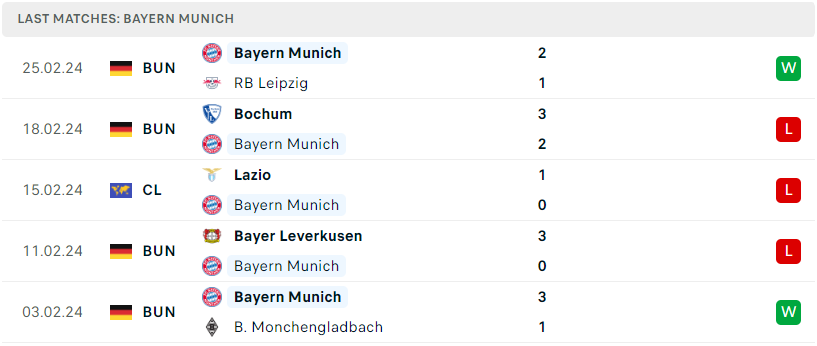 Phong độ đội bóng Freiburg vs Bayern Munich
