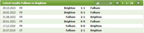 Brighton đã để cho Fulham cầm chân mình với tỉ số 1-1 trong trận lượt đi tại sân nhà Amex tại EPL năm nay. Chim Mòng Biển rõ ràng không muốn một kết quả tương tự sẽ lặp lại ở màn tái đấu tới nhất là khi họ vẫn muốn nâng cao thành tích của mình. Brighton cần một sự chắt chiu hợp lý để tạo ra những khó chịu dành cho Fulham và qua đó tiếp tục cải thiện những gì mà họ đang sở hữu.