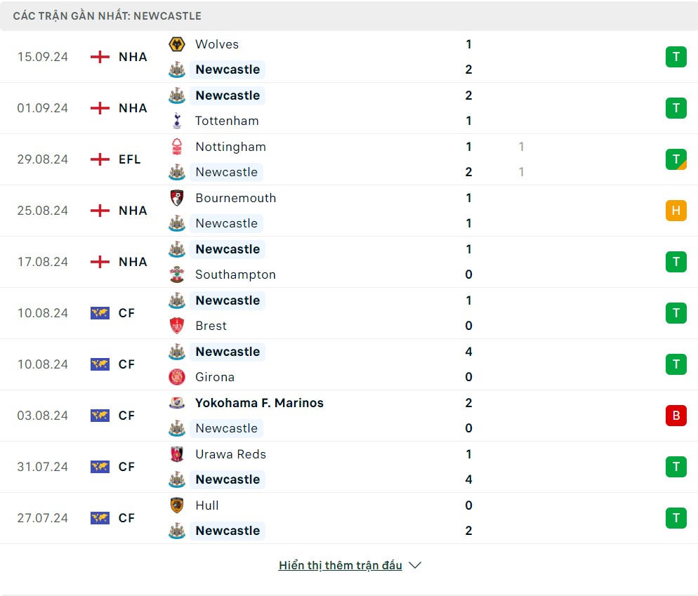 -Phong độ Newcastle