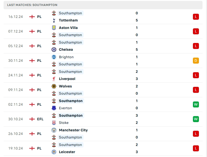 -Phong độ Southampton