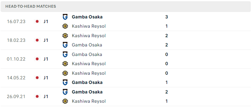 Thành tích đối đầu của Gamba Osaka vs Kashiwa Reysol