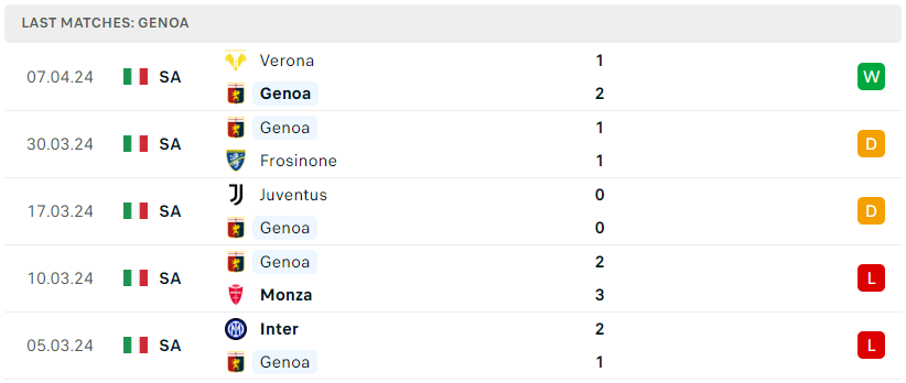 Phong độ của Genoa
