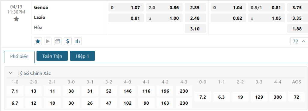 Soi kèo tỉ số Genoa vs Lazio