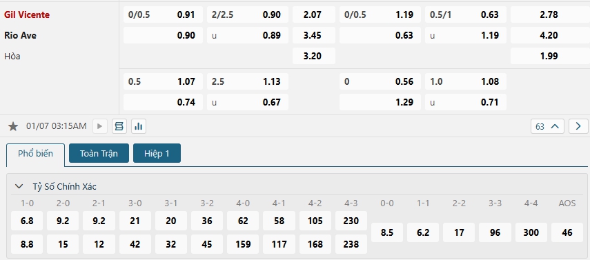 Kèo Châu Âu là sự nhỉnh hơn đôi chút dành cho Gil Vicente khi tỷ lệ cho chiến thắng của các cẩu thủ chủ nhà là 2.07 trong khi con số này bên phía các vị khách Rio Ave là 3.45. Đây là những con số không cho thấy quá nhiều sự cách biệt. Tuy vậy với phong độ tốt, ưu thế sân nhà cùng lịch sử đối đầu ủng hộ thì Gil Vicente vẫn là cái tên đáng để đầu tư ở kèo Châu Âu.