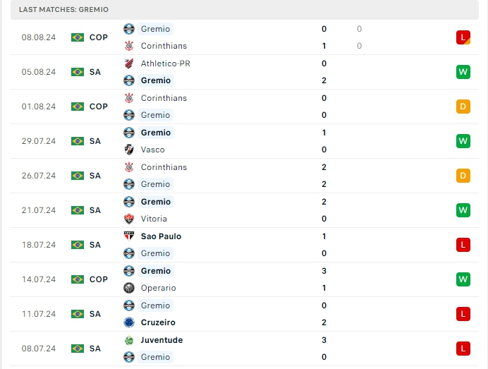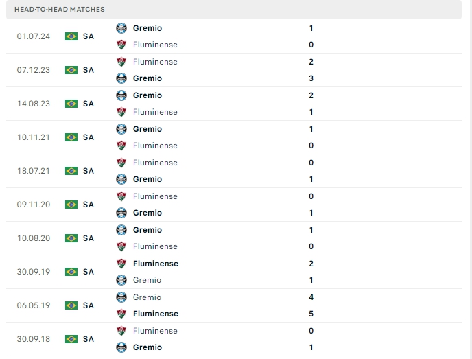 Ở lần chạm mặt gần nhất là màn đụng độ khép lại với chiến thắng 1-0 cho Gremio và lần chạm mặt lần này Gremio chắc chắn cũng đặt ra tham vọng có được chiến thắng trước đối thủ qua đó nắm bắt lợi thế, dù sẻ là chiến thắng không quá dễ dàng trước đối thủ.
