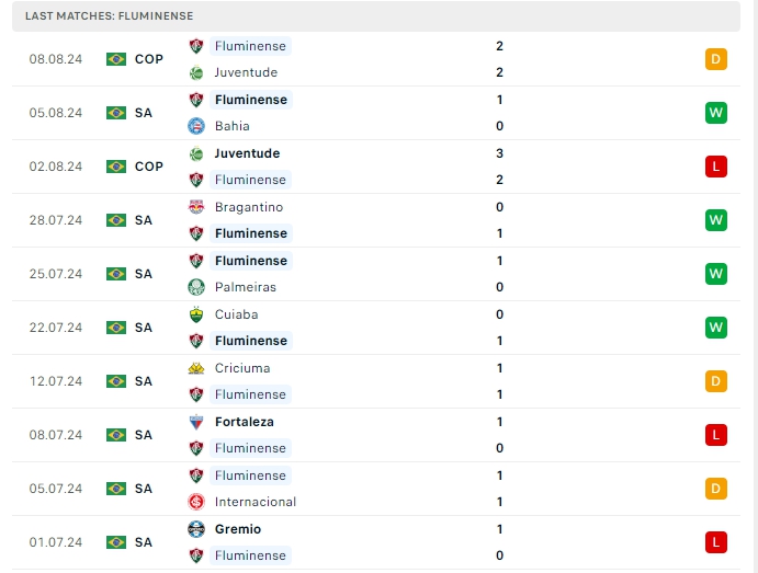 Trong khi đó với Fluminense, khép lại chiến dịch vòng bảng đấu trường Copa Libertadores với ngôi vị nhất bảng A với thành tích bất bại với 4 chiến thắng và 2 hòa, có được 14 điểm. 5/6 trận đấu ở vòng bảng của Fluminense khép lại 90 phút cũng không quá 2 bàn thắng được ghi, phong độ hàng công của Fluminense thời gian qua là không quá tốt,4/5 trận xa nhà gần nhất của Fluminense khép lại 90 phút không quá 2 bàn.