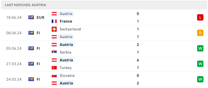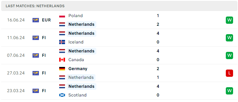 Phong độ đội bóng Hà Lan vs Áo