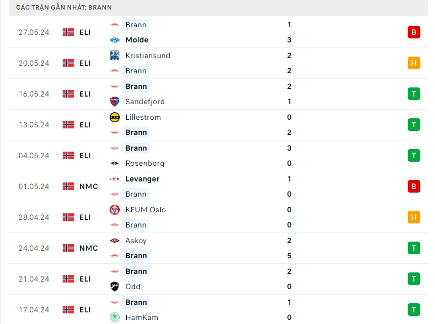 Ở màn chạm mặt nhau gần nhất giữa hai đội Brann cũng có được chiến thắng 1-0 trước đối thủ và ở lần đụng độ làn này chắc chắn họ cũng sẻ đặt quyết tâm cao và tìm kiếm cho mình chiến thắng để tiếp tục duy trì vị trí tốt trên BXH.
