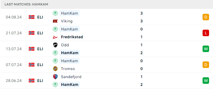 Bên phía kia, HamKam đang có những bước tiến đáng kể khi giành về 3 trận thắng và 2 trận hòa ở 6 trận gần nhất. Kết quả hòa 3-3 trước Viking ở vòng đấu trước càng khẳng định sự tiến bộ của đội bóng dưới trướng Jakob Michelsen. Nhờ chuỗi trận ấn tượng này, HamKam đã thoát khỏi khu vực nguy hiểm. Tuy nhiên, để duy trì được phong độ ổn định và hướng tới mục tiêu cao hơn, HamKam sẽ phải đối mặt với những thử thách lớn hơn, trận đấu với Haugesund sẽ là một trong số đó.