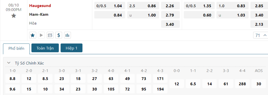 Kèo Châu Âu hiện vẫn đang là sự nhỉnh hơn dành cho Haugesund, khi mức ăn của họ là 2.26 và con số này của các vị khách là 2.79. Ở thời điểm mà phong độ của HamKam đang hoàn toàn nhỉnh hơn Haugesund thì tin chắc rằng chút ít lợi thế sân nhà của đối thủ sẽ không thể khiến đoàn quân Jakob Michelsen. Sự chủ động sẽ giúp họ gặt lại thành quả là chiến thắng ở cặp trận này.