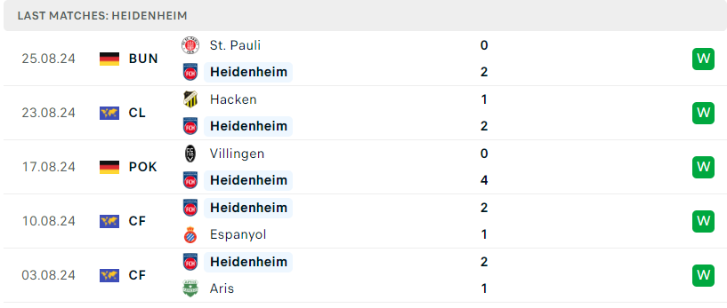 Phong độ của Heidenheim