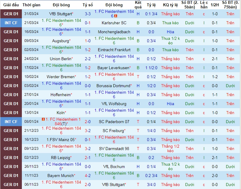 Trong khi đó với Heidenheim cũng đang gặp quá nhiều sự khó khăn trong giai đoạn lượt về. Trận hòa trước Stuttgart vừa qua đã là trận thứ 7 liên tiếp mà họ không nếm mùi chiến thắng. Nếu tính xa hơn, trong 10 vòng đấu gần nhất thì họ cũng chỉ kiếm về duy nhất 1 chiến thắng. Dẫu cho thứ hạng hiện tại của họ vẫn đang tương đối an toàn với 30 điểm có được và đang xếp vị trí thứ 11 trên BXH, tuy nhiên nếu không sớm tìm ra biện pháp khắc phục thì chắc chắn mọi kịch bản xấu điều có thể xảy ra.